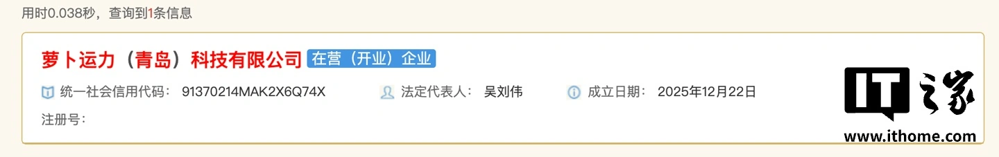 企业信用信息系统的更新,揭示了自动驾驶领域的最新区域动态。2025年12月22日,“萝卜运力(青岛)科技有限公司”在青岛市城阳区正式注册成立。该公司由萝卜运力(北京)科技有限公司全资控股,注册资本100万元,法定代表人为吴刘伟。