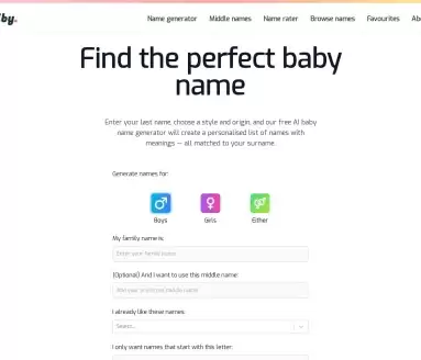 为新生儿选择一个完美的名字,需要兼顾音韵、独特性、文化寓意与家族传承。Baiby - Baby Name Generator 正是为此设计的专业AI命名工具,它通过智能算法,为寻求男孩、女孩或中性名字的父母提供高度个性化的候选清单。