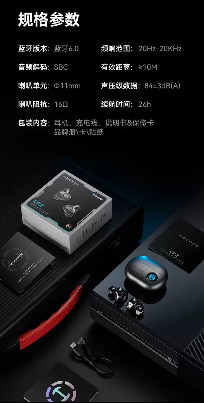聚焦产品核心。漫步者HECATE CP2的官方参数显示,其设计针对游戏场景做了专项优化。独特的轴心球形佩戴结构,旨在实现更稳固、无压的耳廓适配。声学部分采用同轴心圆架构,内置11mm PEN镀钛复合振膜,为精准的声场定位与动态响应提供了硬件基础。