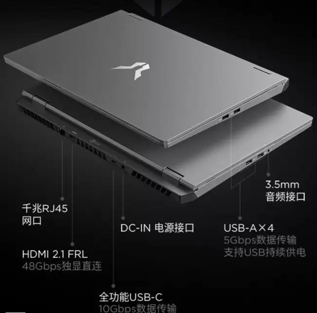 扩展能力是衡量游戏本实用性的关键。战7000的接口布局充分考虑了多外设连接场景:机身左右两侧共分布四个USB-A 5Gbps接口与独立音频接口;后部则集成了千兆有线网口、支持高带宽输出的HDMI 2.1接口以及一个支持数据传输、视频输出与PD充电的全功能USB-C接口。该设计便于用户整理线缆,轻松组建多屏工作站或连接高速存储设备。