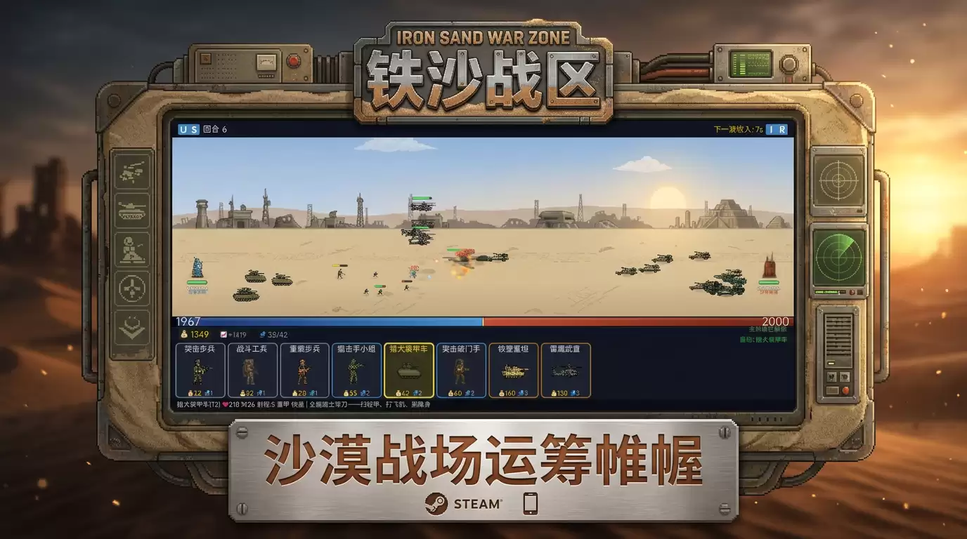 简单来说,《铁沙战区》是一款主打非对称策略的对战游戏。它的核心乐趣在哪里?首先,你需要选择一个阵营,然后精心编排你的兵种组合。战斗过程是自动出兵,但千万别以为这就成了“挂机游戏”——真正的胜负手,在于你在横版沙漠战场上的运筹帷幄。如何利用兵种间的克制关系,如何高效管理资源进行经济博弈,最终击溃对手的基地,这才是考验玩家策略深度的关键。可以说,它把策略的“脑力”对决,放在了非常核心的位置。