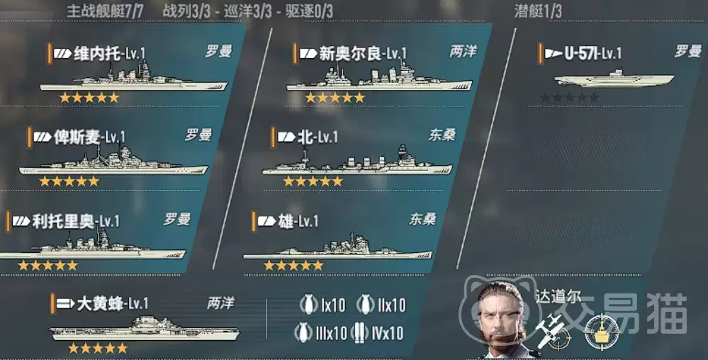 当然,这套配置也存在明显的成长空间:阵营尚未达成满编,两洋与罗曼体系的增益仅处于初级激活状态;舰队的生存容错率相对偏低;同时,潜艇与主力舰的席位也未达到上限,整体战力还有很大的拓展余地。