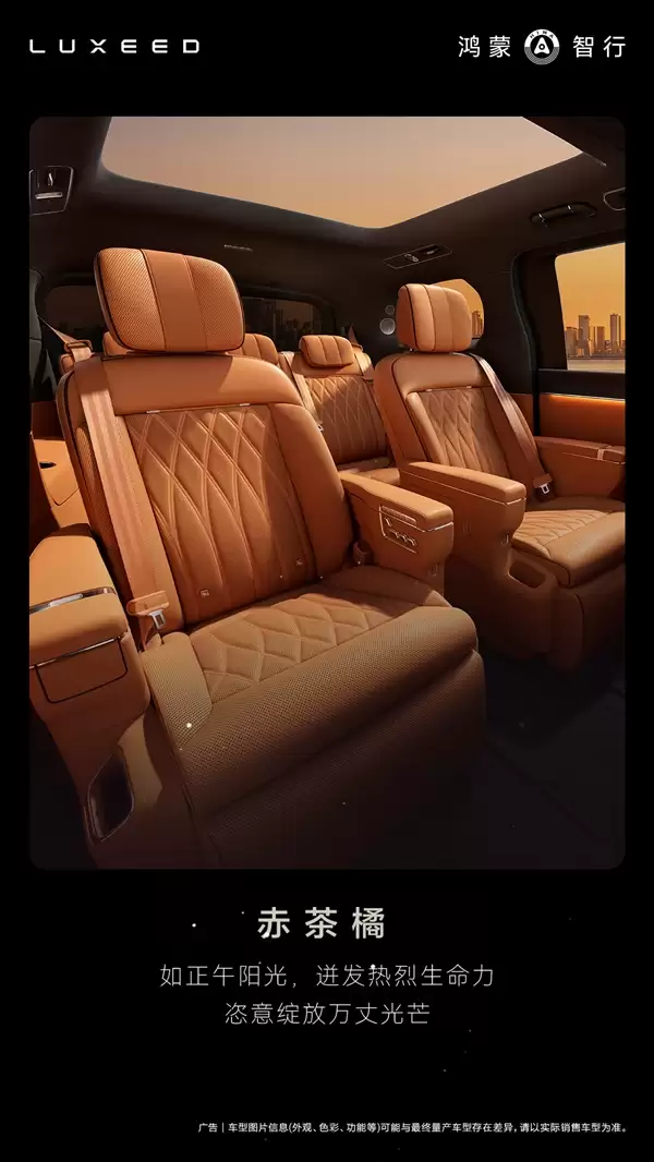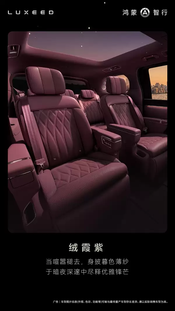V9座舱提供绒霞紫、赤茶橘、韶华杏三款内饰配色。设计团队意图明确:通过更具温度感与独特性的色彩方案,塑造差异化的高级感或居家氛围,因此并未引入常见的纯黑选项。