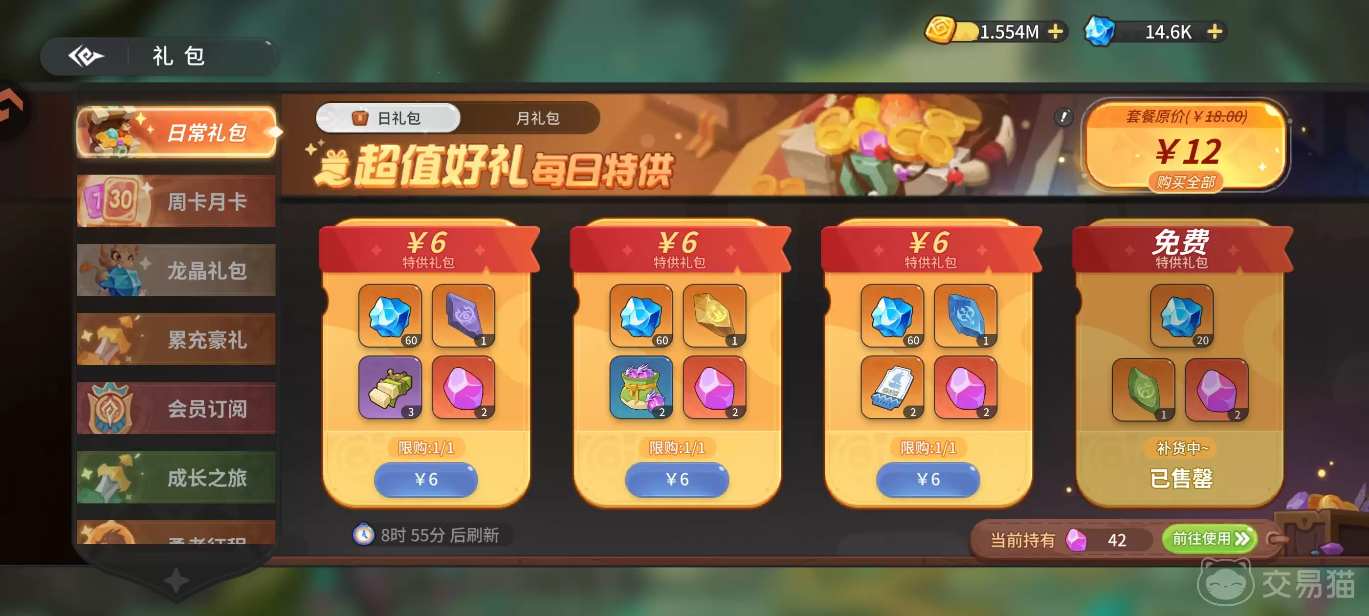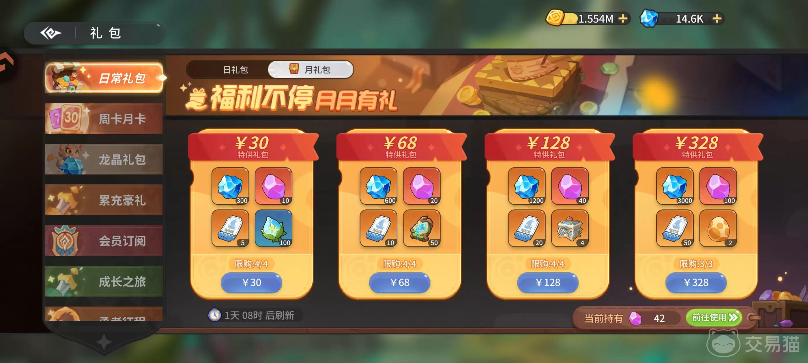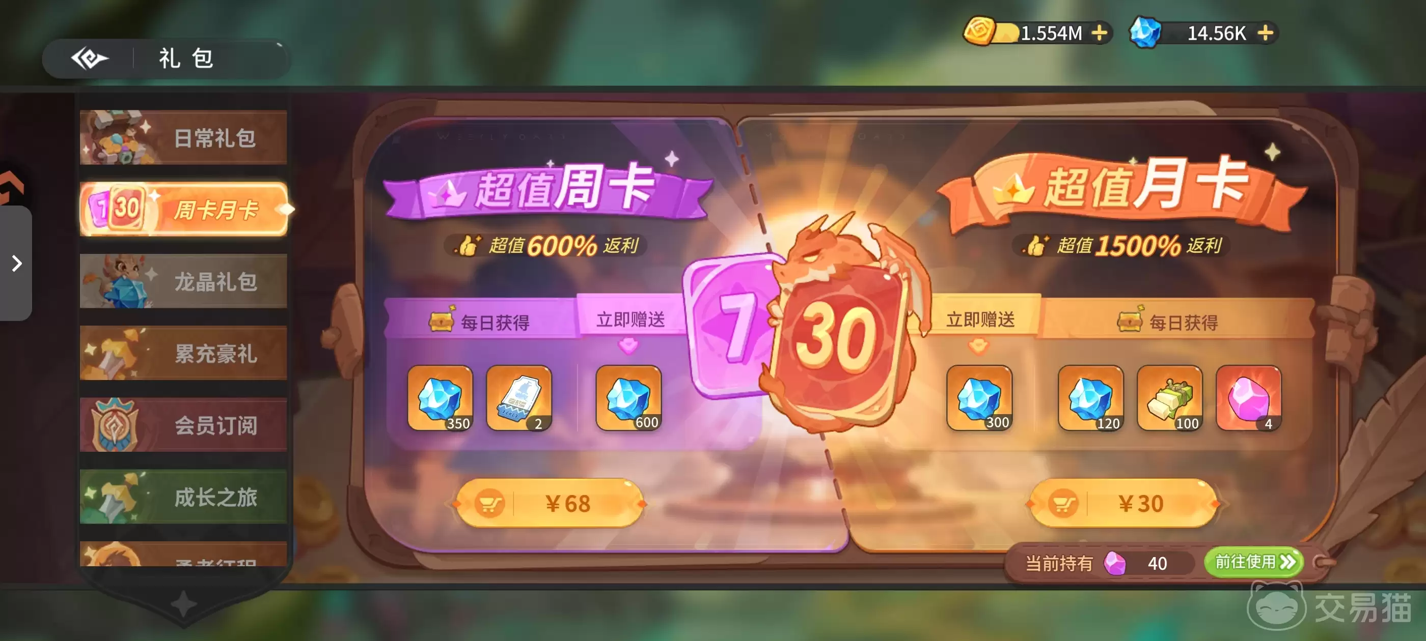 一句话点评:与单纯购买龙晶相比,月礼包的材料配比更合理,整体资源利用率更高。是中氪用户进行周期性资源补充的优选。