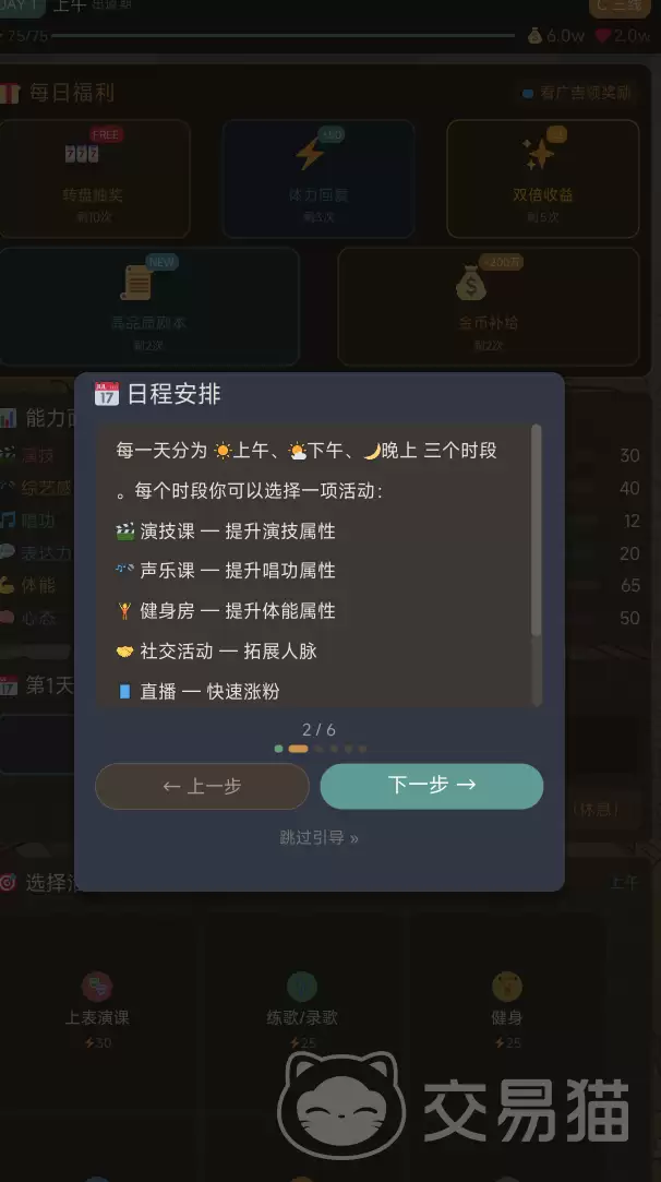具体怎么操作呢?游戏把一天切分成了上午、下午、晚上三个时段,每个时段你都能安排一项活动。比如,想去报个演技培训班提升一下专业能力?没问题。但要注意,不同的课程对应提升不同的能力维度。这里有个小建议:最好根据你当初选择的出道路线,来有针对性地安排训练,这样才能事半功倍,实现高效成长。