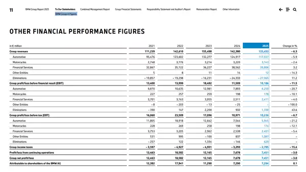 从核心财务指标来看,集团全年总营收为1334.53亿欧元,同比下降6.3%。盈利能力同步面临压力,全年税前利润(EBT)为102.36亿欧元,同比减少6.7%;集团净利润录得74.51亿欧元,较上年的76.78亿欧元略有下滑。整体财报反映出豪华汽车行业当前面临的宏观挑战。
