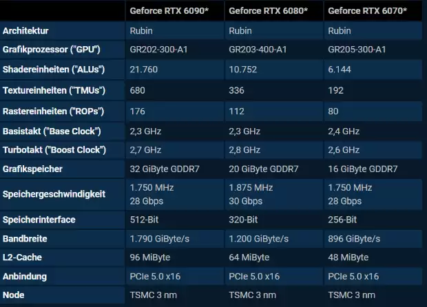 最近,有爆料者带来了关于GeForce RTX 60系列三款不同核心的部分信息,不出意外的话,它们将分别对应RTX 6090、RTX 6080以及RTX 6070。