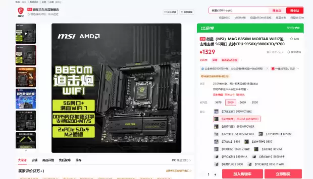微星MAG B850M MORTAR WIFI 迫击炮主板采用mATX版型,拥有2个PCIe 5.0 M.2插槽,支持DDR5-8200+MT/s内存,并支持WiFi 7。