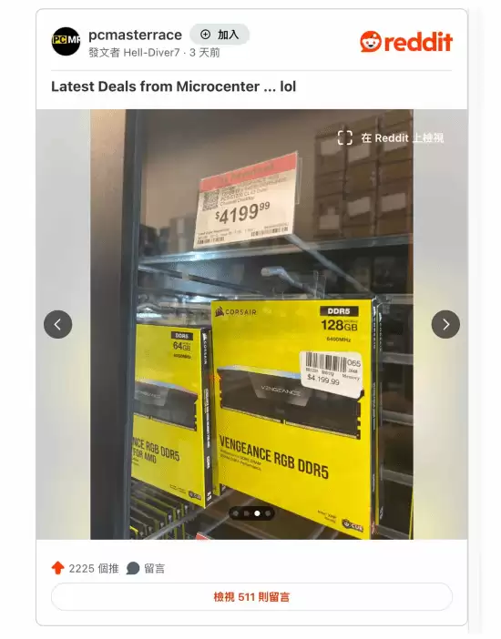美国零售商 Micro Center 近期的一款高价内存产品,在硬件玩家社区中引发了广泛讨论。有消费者发现,一套 128GB 的 DDR5 内存套装标价高达 4199 美元,这一价格甚至超越了部分高端显卡。这引发了核心疑问:当前内存市场的价格上涨,是否单纯由供应紧张驱动?从消费端数据观察,DIY 市场对内存和 SSD 的需求实际在放缓,但部分零售渠道的价格却异常坚挺。