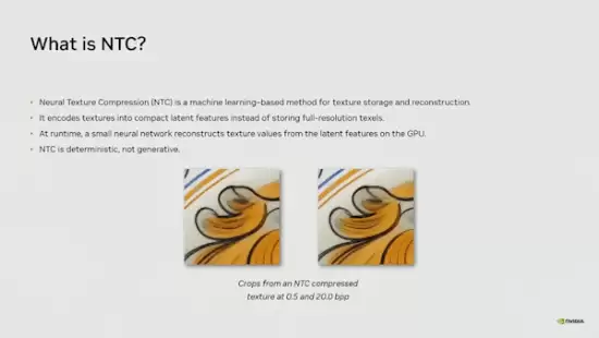 需要明确的核心特性是:NTC属于确定性解码技术,而非生成式AI。这确保了其输出结果绝对精准且可复现,完全规避了“AI幻觉”可能引发的画面错误,对于要求像素级一致性的实时渲染至关重要。