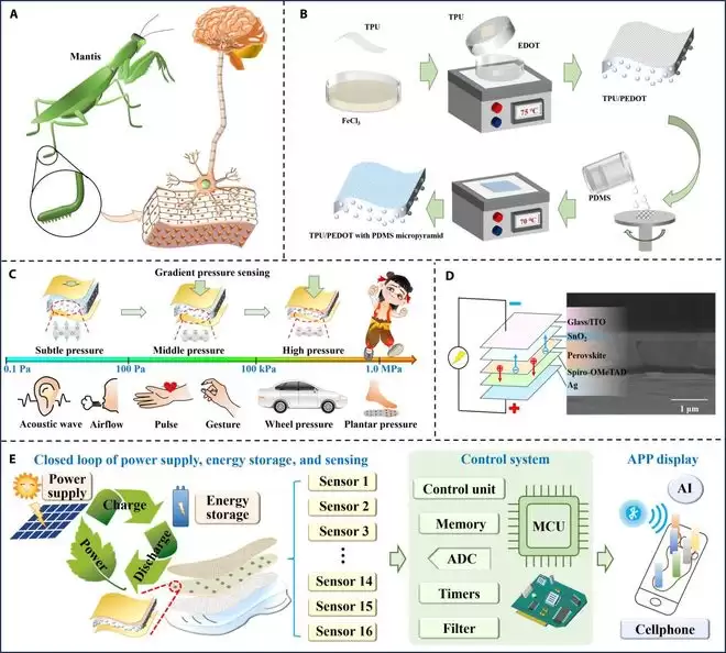 研究团队从自然界中找到了解决方案的灵感。螳螂捕猎时,其腿部结构既能感知猎物的微弱动静,又能承受自身快速移动带来的强大冲击。这种分级式机械传感机制为团队提供了关键设计思路。