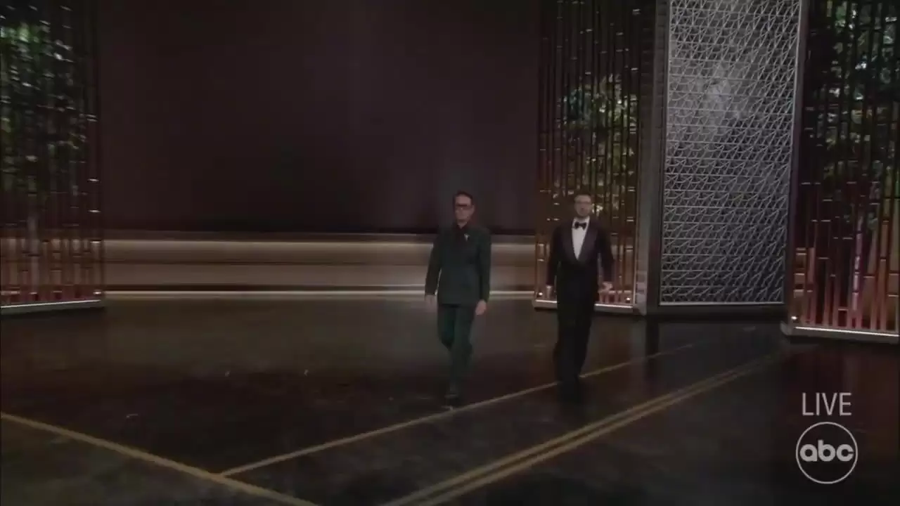 颁奖典礼当晚的高光时刻之一,无疑是小罗伯特·唐尼与克里斯·埃文斯共同登台颁发最佳改编剧本奖。距离两人首次在《复仇者联盟》中联手已过去十四年,此次同框瞬间点燃了现场气氛,引发了持久而热烈的掌声。这一时刻不仅唤起了全球影迷对漫威电影宇宙经典时代的集体回忆,也成为了本届奥斯卡颁奖礼社交传播的核心话题。
