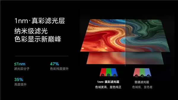 为确保色彩纯净度,创维定制了「1nm 真彩滤光层」。该技术能精准匹配背光光谱,将滤光精度控制在1纳米级。效果直接体现为色彩纯净度提升47%,画面通透亮丽,彻底杜绝了色彩串扰与浑浊感。