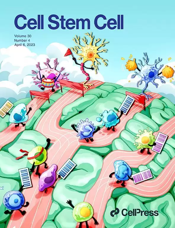 2024年3月,陈跃军团队在干细胞顶级期刊《Cell Stem Cell》上以封面文章形式发表了一项关键成果。封面设计形象地揭示了研究精髓:携带独特“条形码”的神经细胞,正沿着分叉路径奔向不同的分化终点。这些“条形码”正是团队自主研发的细胞谱系示踪技术SISBAR。