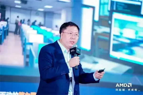随后,AMD大中华区市场营销副总裁纪朝晖先生发表了《开放合作,共赢AI时代》的主题演讲。他深入解读了全球AI技术趋势为教育智能化带来的机遇,并重申了AMD坚持开放架构与生态协同的核心战略。其关键在于,通过与合作伙伴的紧密协作,降低教育行业获取与应用高性能算力的技术门槛,从而让普惠算力切实服务于高校的前沿科研攻关与高水平人才培养。