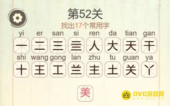 卡在第52关了?别着急,这一关的“美”字确实藏着不少玄机。很多玩家都在这里犯了难,不知道从何下手。今天,我们就来一起拆解这个字,看看如何从中找出全部的17个常用字。