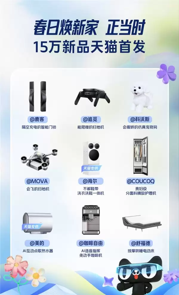 核心新品有何突破?我们聚焦几款代表性产品。追觅首度在国内亮相的MOVA Pilot 70扫地机器人,实现了真正的“飞行”越障与自主楼梯攀爬。鹿客智能门锁则引入了隔空激光充电技术,从根本上终结了智能门锁的电量焦虑。科沃斯推出的智能陪伴宠物狗“毛团儿”,已登陆其天猫官方旗舰店,叠加平台优惠后,尝鲜价为3999元。此外,海尔那款无需手动解系鞋带即可完成清洁的三筒洗衣洗鞋一体机,选择在天猫进行独家首发,结合国家补贴与平台优惠,消费者最终入手价接近官方定价的67折。