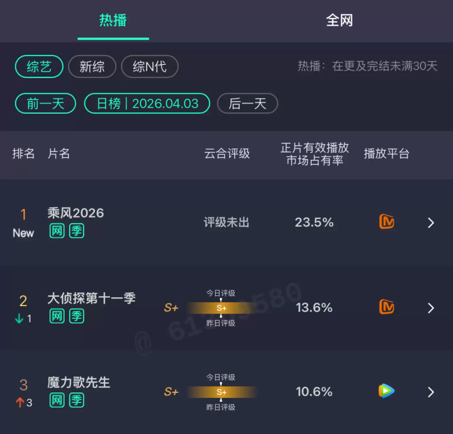 云合数据显示,其首播正片市占率高达23.5%,稳坐综艺霸屏榜头把交椅;初舞台直播观看量冲上9500万,刷新了芒果TV的综艺直播纪录;豆瓣单日实时热度峰值突破5800万,同样登顶榜首……更不用提开播当天近200个热搜的“屠榜”盛况,微博文娱榜前排几乎被节目相关话题包场。