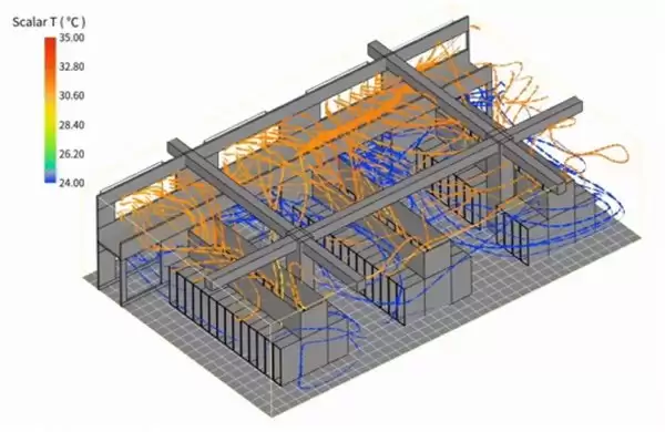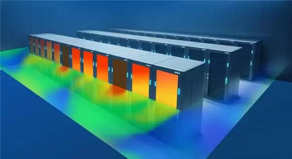图为云道智能伏图-电子散热模块(Simdroid-EC)机房散热效果图。来源:云道智能