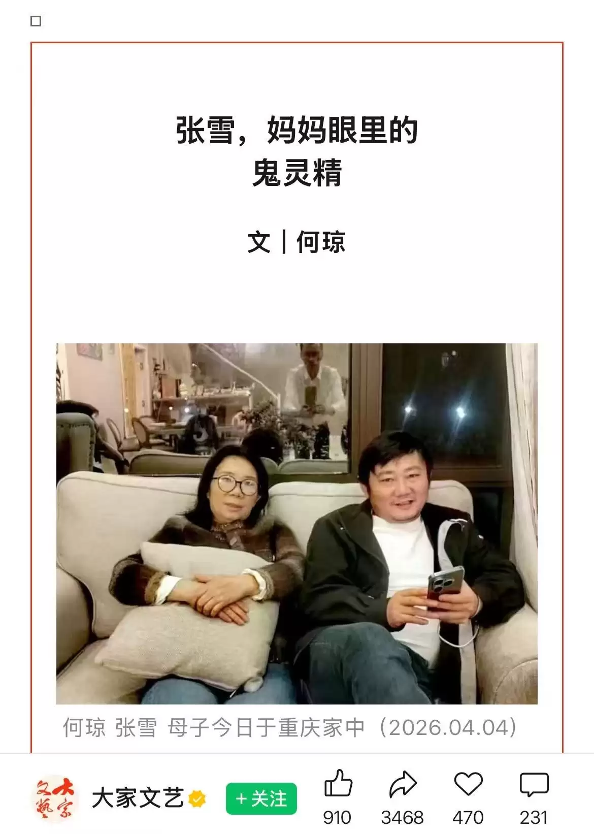 4月6日,儿子张雪加冕WSBK世界冠军的荣耀时刻,母亲何琼发布了一篇题为《张雪,妈妈眼里的鬼灵精》的长文,情感真挚而克制。