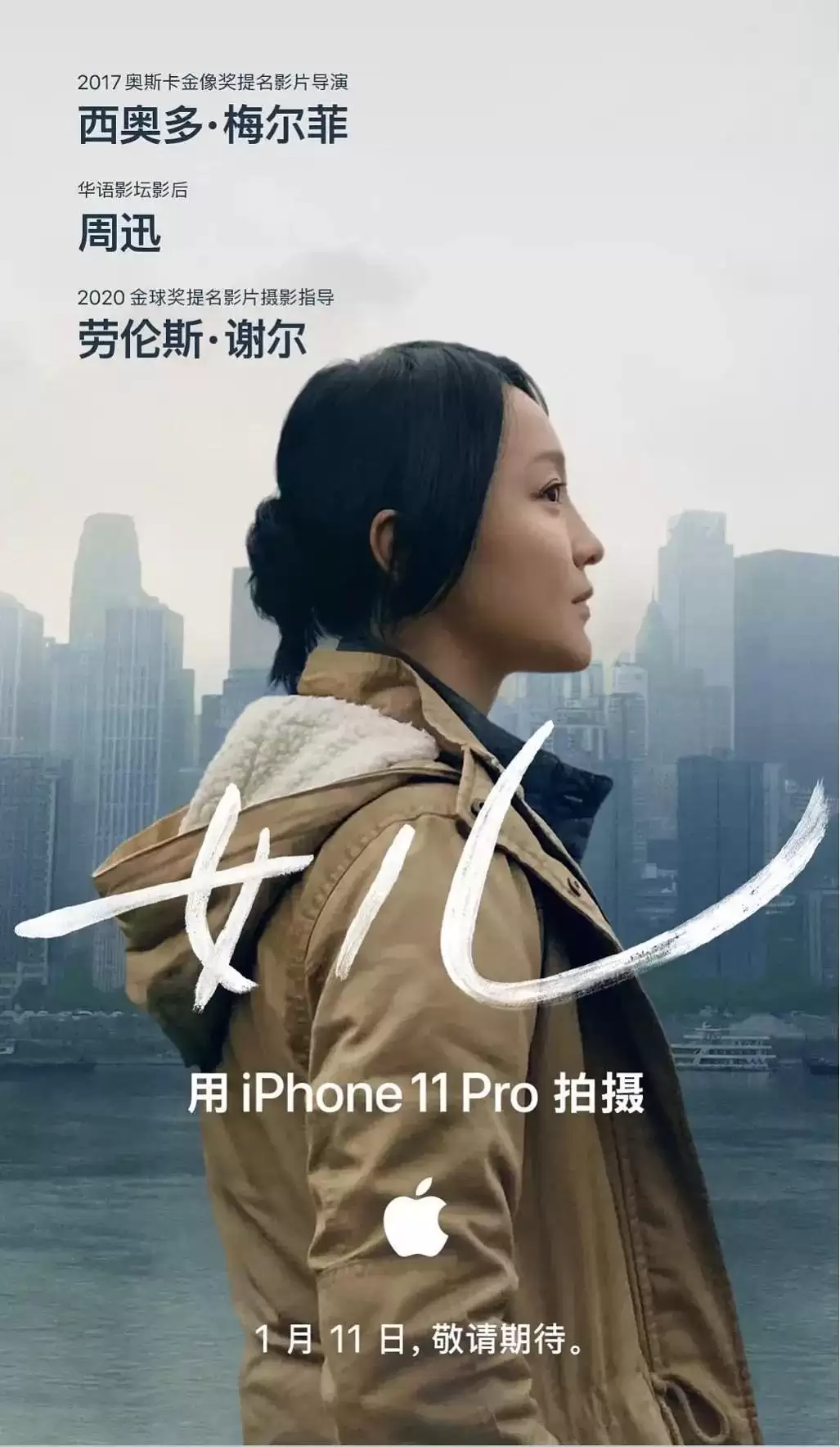 2020 年 ——《女儿》:创作团队包括 2017 奥斯卡金像奖提名影片导演西奥多・梅尔菲、华语影坛影后周迅以及 2020 金像奖提名影片摄影指导劳伦斯・谢尔,使用 iPhone 11 Pro 拍摄。