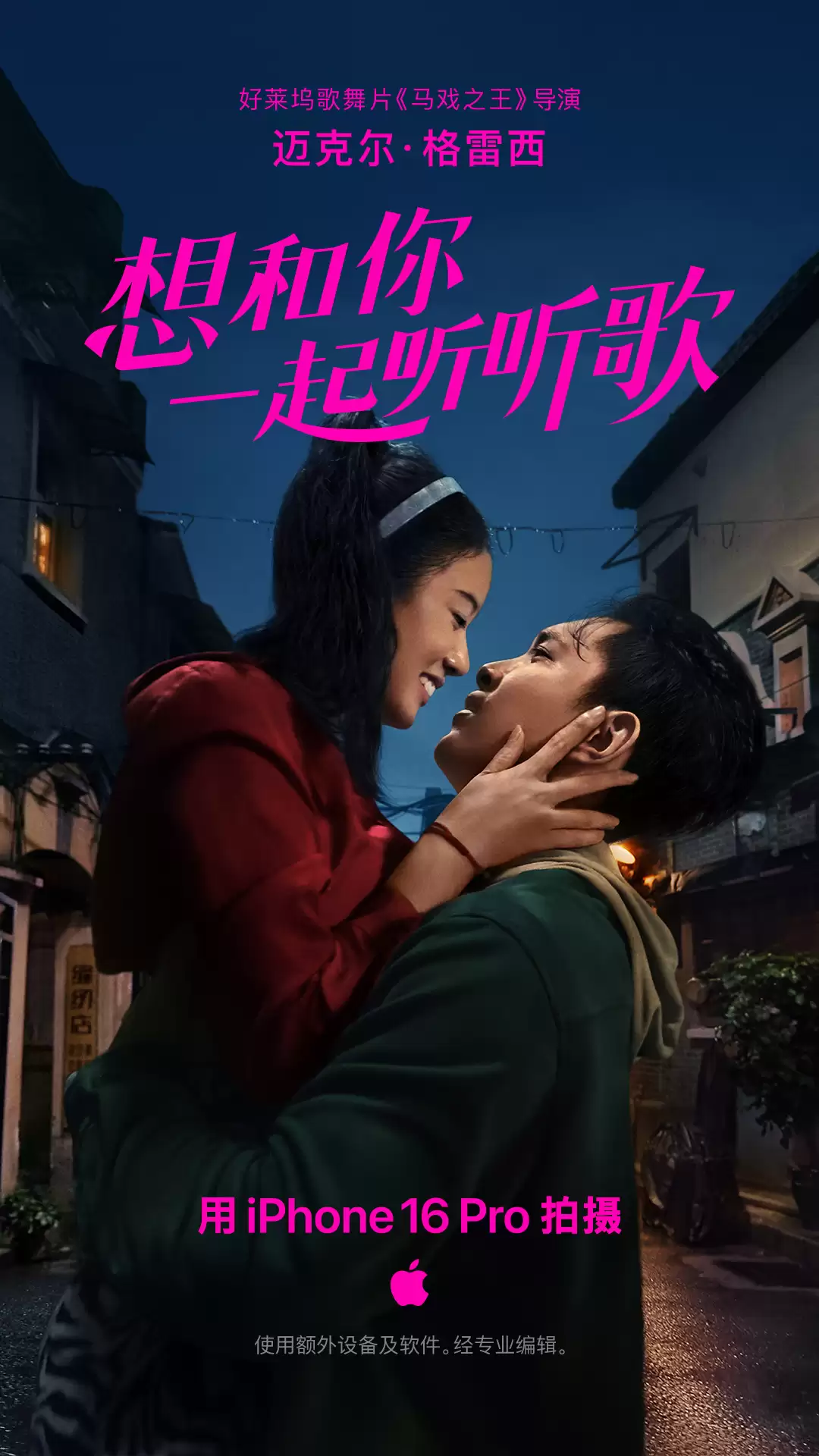 2025 年 —— 《想和你一起听听歌》:苹果首部新春歌舞片,由好莱坞歌舞片《马戏之王》导演迈克尔・格雷西执导,使用 iPhone 16 Pro 拍摄。
