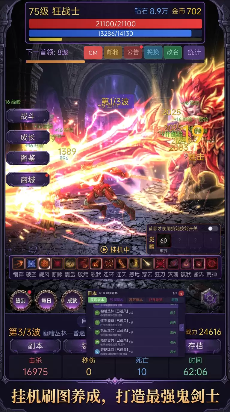 简单来说,这是一款能让老玩家会心一笑,又能让新玩家直呼过瘾的放置冒险游戏。它完美复刻了经典横版动作RPG的刷图精髓——双职业切换、无限刷宝、再加上解放双手的挂机玩法,让你随时随地都能体验深入地下城、用华丽连招斩杀怪物的爽快感。战斗手感相当硬核,讲究“一刀入魂”的操作节奏,绝非简单的数值对撞。