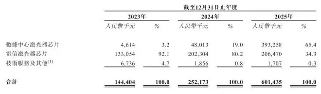 收入构成清晰指明了增长驱动力。2025年,源自数据中心应用的激光器芯片销售收入为3.93亿元,占总营收65.4%;电信领域激光器芯片收入为2.06亿元,占比34.3%。这一结构直接映射了全球AI算力基建与5G网络部署的双重需求拉动。