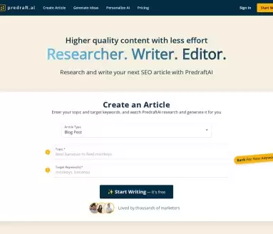 总的来说,Predraft SEO Researcher & Writer 是一款定位清晰、功能扎实的AI写作辅助工具。它没有试图包办一切,而是聚焦于解决SEO和内容创作中“研究耗时”和“风格统一”两大实际痛点。通过自动化研究确保信息的新鲜与准确,再通过灵活的语调控制守住品牌的个性,最后用原创检测和隐私保护来免除用户的后顾之忧。
