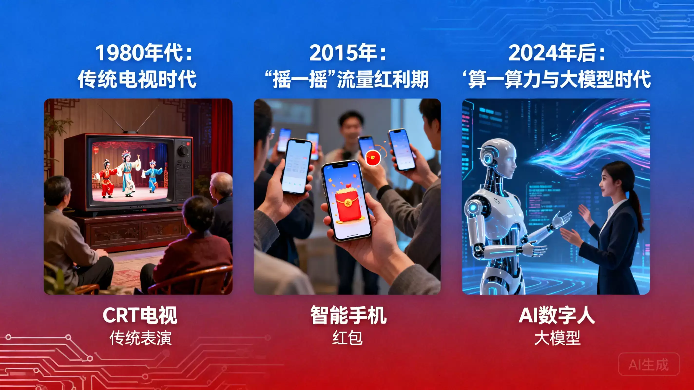 这两个场景的切换,远不止是互动形式的更新。其背后,是一场深刻的产业革命。春晚这台已走过四十多年的“国民级产品”,其核心价值究竟发生了怎样的根本性跃迁?作为身处浪潮之中的观察者,又该如何解读这场每年一度、却又年年不同的“国民级路演”?