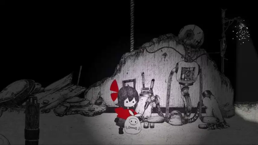 故事始于一个被黑暗笼罩的世界。主人公日野在一所废弃的幼儿园中醒来,手中握着一根能为她提供活力的“灯泡手杖”,就此踏上了寻找安宁的旅途。路上,她遇到了一个古怪的伙伴——一具名叫莫尼莫尼的骷髅,而它的执念仅仅是一罐咖啡牛奶。一人一骷髅就此结伴,闯入了被各种怪物占据的险恶之地。