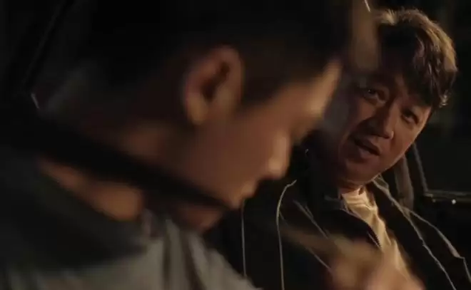在1997年的戏份里,他一身松垮便装,脸上毫无磨皮滤镜的痕迹,眼神里却藏着老警察特有的敏锐。查案时,无论是盯着电梯暗道,还是审视血手印,只需眉头微微一皱,那种快速梳理线索的专业状态就全出来了。