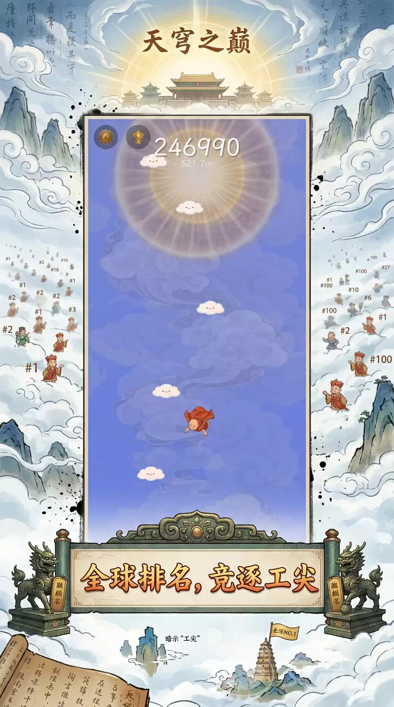 游戏操作极其简单,单手就能搞定——左右滑动屏幕,调整唐僧的横向位置,瞄准云朵中心踩下去就行。但恰恰是这种简单,让一些常见误区暴露无遗:滑动太快、幅度太大,或者眼里只盯着更高的云,却忽略了脚下这朵的落点是否稳妥。经验表明,想玩得久、得分高,秘诀在于“小步微调、盯准中心、节奏先行”。每一步都力求落在云朵最扎实的区域,拒绝贪心冒进,这种稳扎稳打的风格,才是积累高分的基础。