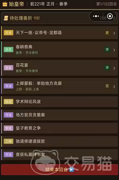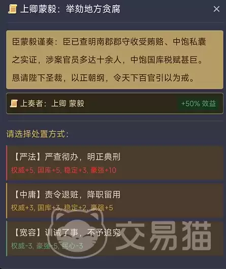 朝堂之上,永远暗流涌动。文官、武将、宦官三大集团的势力值在实时演算,任何一方的支持度低于30,都会触发“党争激化”状态:文官集团低迷,律法执行效率就会大打折扣;武将集团不满,边军的换防就会严重延误;宦官势力失控,监察体系就会形同虚设,腐败指数直线飙升。作为皇帝,你得通过发布有倾向性的诏令(比如连发三道重农诏来安抚文官)、定期进行职务轮换、以及对关键人物进行专项赏赐等手段,小心翼翼地维持着这危险的平衡。