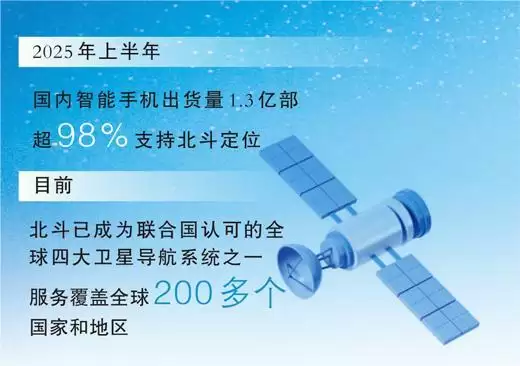 走到今天,北斗产业已经完成了从无到有、从有到优的跨越式发展。产业链上游,多款国产北斗芯片在性能与功耗上已跻身国际先进水平,自主可控的底气越来越足。终端层面,数据更有说服力:2025年上半年,国内智能手机出货量达1.3亿部,其中超过98%支持北斗定位,产业基础之坚实,可见一斑。