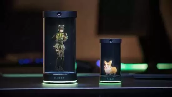 从官方释放的视频画面来看,A VA Mini的设计充满了极客式的浪漫。其主体是一个圆柱形的透明腔体,内部承载着可交互的AI虚拟形象。搭配雷蛇标志性的RGB灯光系统,设备能营造出极具沉浸感的氛围。这种设计思路,很容易让人联想到我们小时候热衷的电子宠物,但科技含量和交互深度显然不可同日而语。