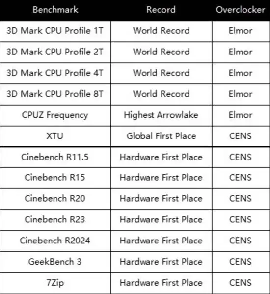 而这其中,ROG MAXIMUS Z890 APEX主板无疑是那颗最闪亮的星。它自诞生起就肩负着“只为超越”的使命,是硬核发烧友挑战极限的终极搭档。这不,在CENS、Elmor等全球顶级超频大师的联手调校下,这款主板与酷睿Ultra 200S Plus处理器、芝奇Trident Z DDR5内存组成的梦幻组合,已经一举斩获了多项超频世界纪录,实力堪称恐怖。