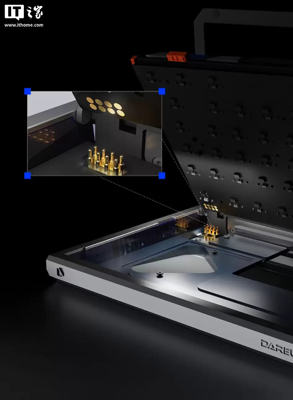 ULTRA 75的最大突破,是将复杂的键盘改装简化为直觉化操作。其星轨铰链结构不仅实现多角度悬停,更通过内置的触点模块实现上盖的即时供电与通讯。用户无需借助任何工具或焊接知识。