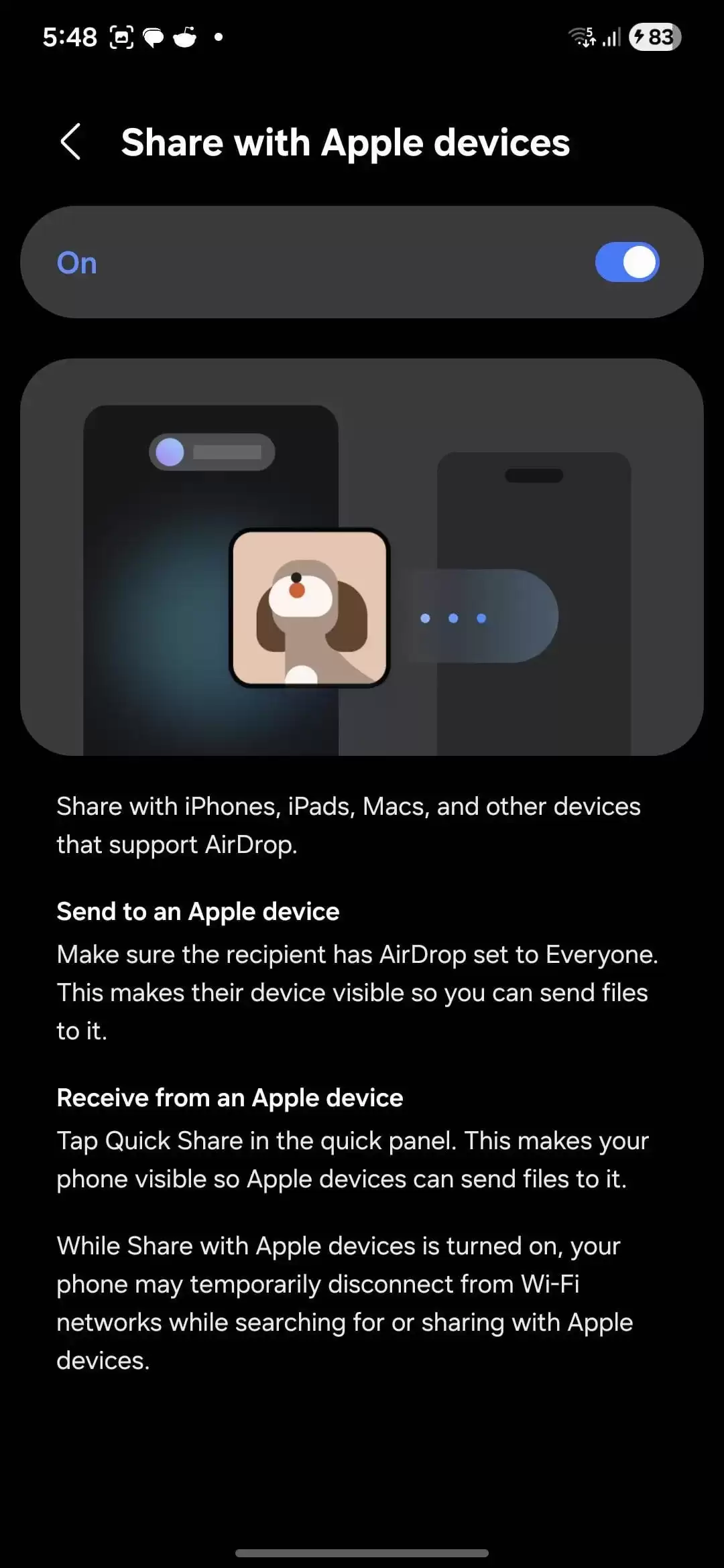 三星 Galaxy S22-25 等旧款手机更新 One UI 8.5 后出现隔空投送开关,但无法正常工作
