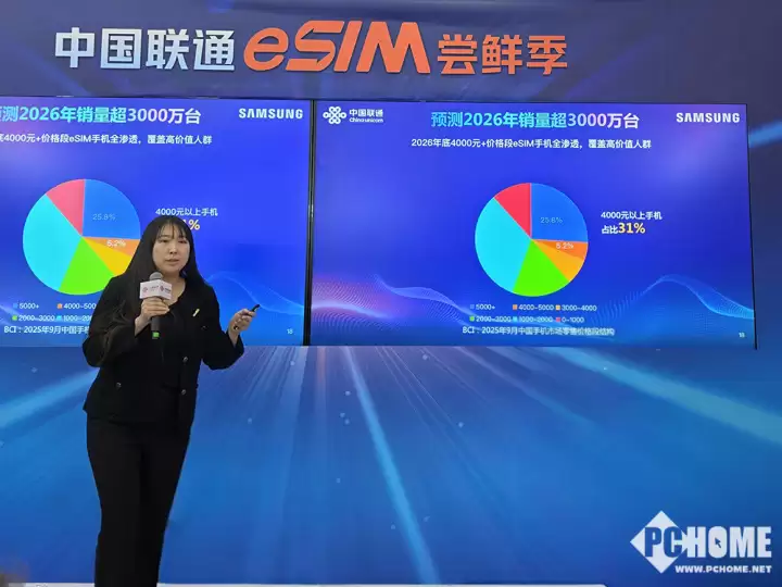 三星Galaxy S26系列的引入,显著增强了联通“eSIM尝鲜季”的产品矩阵与市场号召力,为用户提供了更高阶的eSIM终端选择。中国联通表示,将持续推动eSIM技术向全场景智能设备渗透,深化用户的数字化体验。基于现有增速,联通预判至2026年,中国eSIM手机年销量将超过3000万部,并在高端市场(4000元以上)完成全面覆盖。