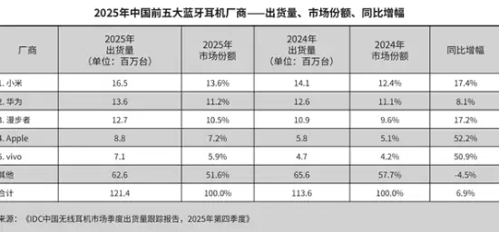 17.4%增速领跑!小米拿下2025中国蓝牙耳机市场第一