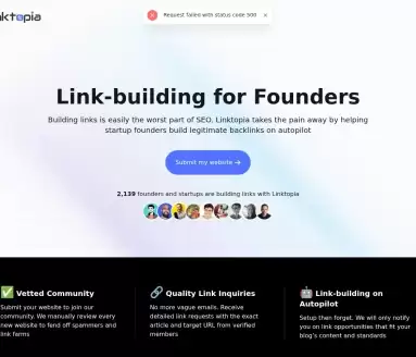 简单来说,Linktopia是一个专为SaaS创业社区打造的链接交换平台。它的构想很直接:一群资深的SEO和链接建设专家,发现初创公司获取高质量外链实在头疼,于是干脆搭建了一个“以链接换链接”的集市。目标用户也相当明确,就是那些急需提升域名权威和自然流量的创始人,以及为他们服务的SEO专家。