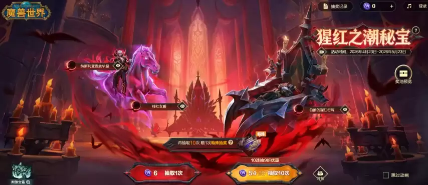 4月23日,《魔兽世界》国服上线了一个名为“猩红之潮秘宝”的抽奖活动。伴随活动而来的,是伯爵的猩红行驾、绯红女爵、纳斯利亚贵族华服等一系列国服专属的全新幻化道具。
