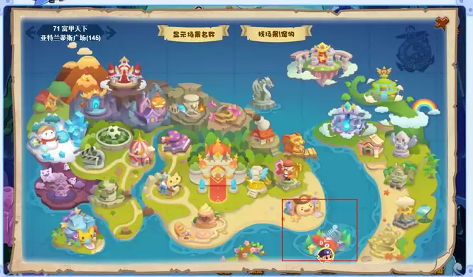 第二步,世界地图展开后,你的目标地点是“亚特兰蒂斯遗迹”。找到它,然后点击进入这片神秘的水下区域。