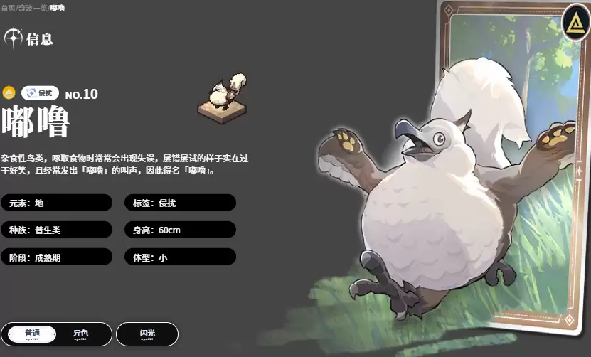 先从地系奇波说起。如果你选择了嘟噜,那么它的技能组合就非常有意思了。核心推荐“一地嘟噜毛”、“岩石滚撞”和“嘟噜一怒”。这套搭配的思路很明确:利用地属性的冲撞和滚地攻击制造伤害。更关键的是,嘟噜自带一个相当实用的生存机制——每5秒必定成功闪避一次敌方攻击。这意味着它在冲锋陷阵时多了层保障。当它张开翅膀冲向敌人时,路径上的所有目标都会受到连续打击。这套连招不仅伤害可观,后期还能有效清空敌人的架势槽,从而触发额外的破防伤害,输出潜力相当不错。
