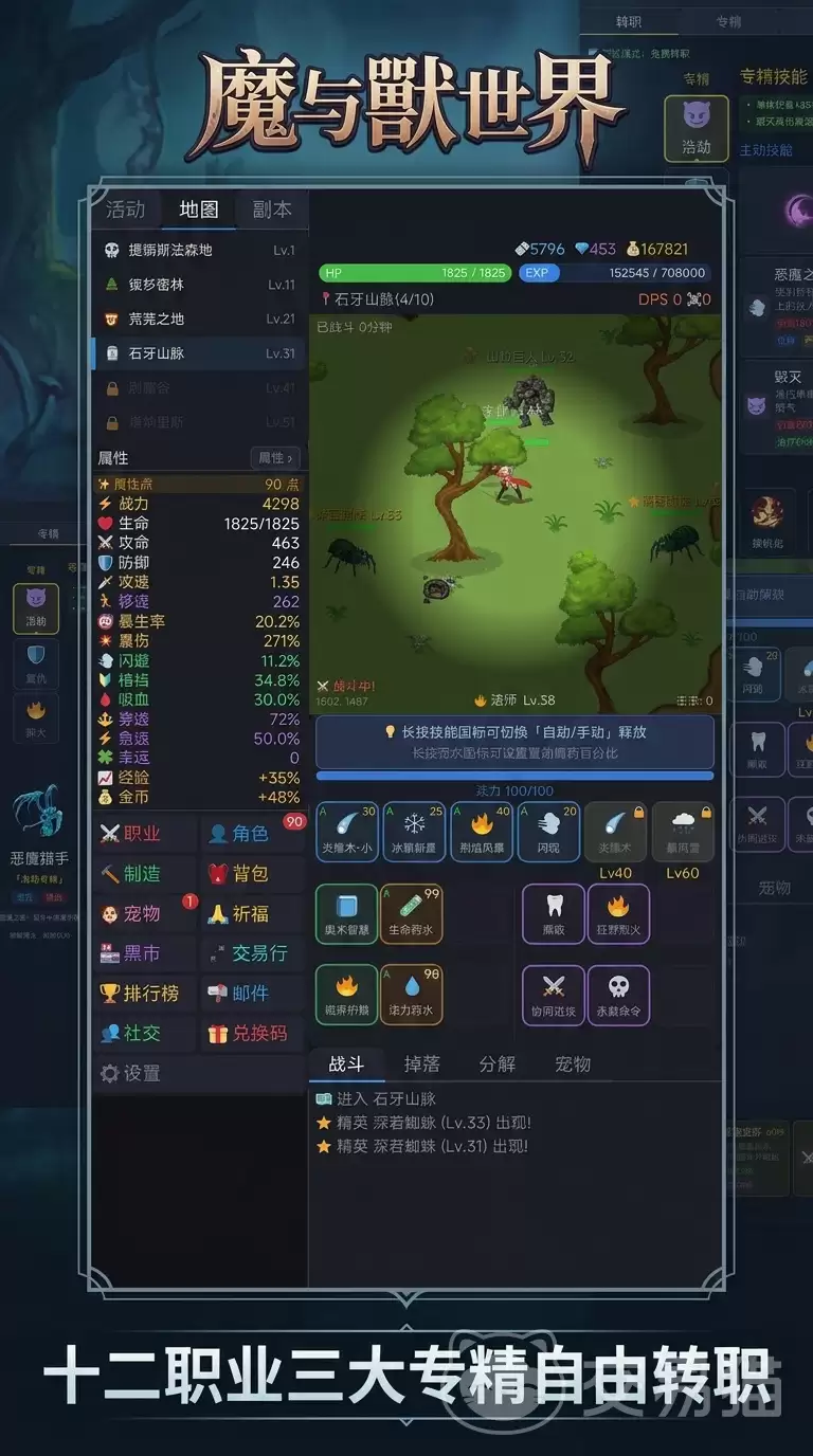 游戏的战斗系统设计得相当巧妙,采用了“自动挂机+关键节点手动介入”的双模机制。这意味着什么?日常刷怪、收集战利品这些重复性工作,系统可以帮你高效完成,解放双手。但到了真正考验技术的时刻——比如遭遇精英怪、挑战副本首领,或是参与围剿世界级BOSS时,手动操作的价值就凸显出来了。实时操控走位、精准规避范围技能、抓住时机释放终结技,这些操作往往能左右战局。再加上全动态的战斗动画和实时光影渲染,每一次交锋的视觉反馈和操作代入感都相当扎实。值得一提的是,技能暴击伤害是独立计算的,不和基础暴击率混为一谈,这让输出策略的规划变得清晰且有据可依。