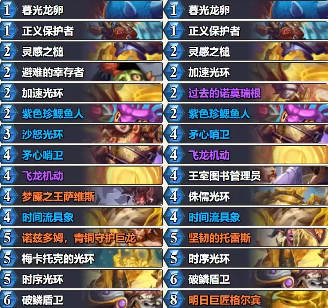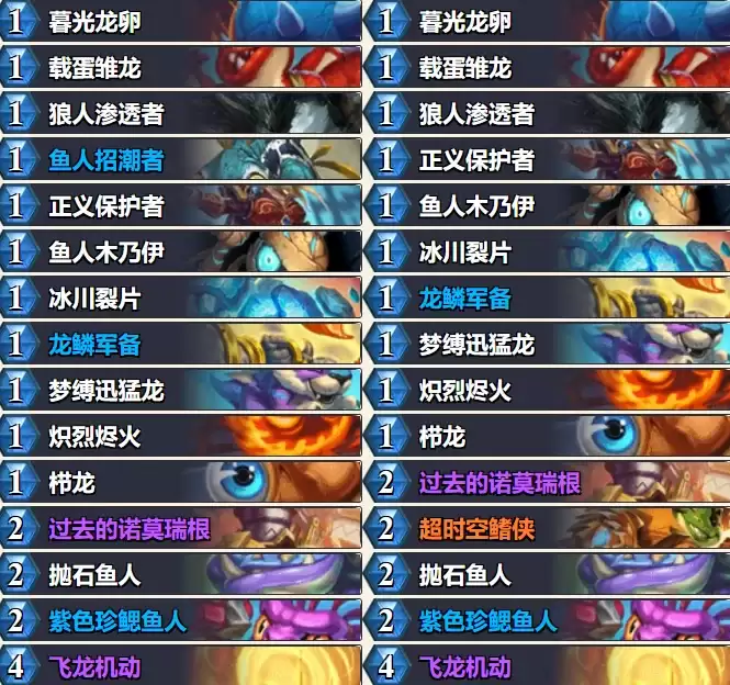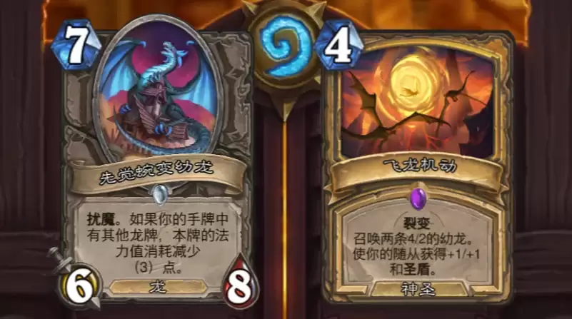 不过仔细一看,这次构筑天梯的改动幅度并不大,真正挨刀的卡牌只有两张:先觉蜿变幼龙和圣骑士的飞龙机动。