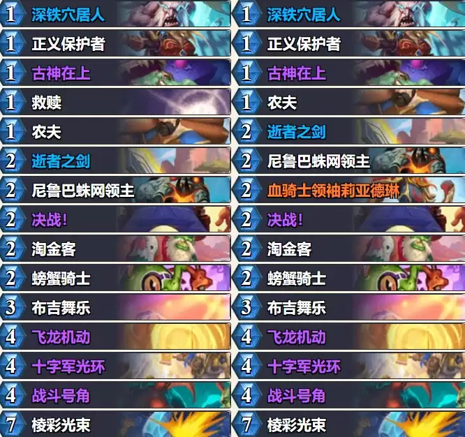 当然,结束骑这个卡组,优缺点同样明显。它非常依赖牌序,不像法术瞎等卡组那样稳定。顺起来势不可挡,但一旦卡手,下限也低得令人头疼。此外,狂野模式的号角骑也会受到波及。这个卡组胜率虽然不错,但出场率一直不温不火,算是环境里的一个冷门利器。