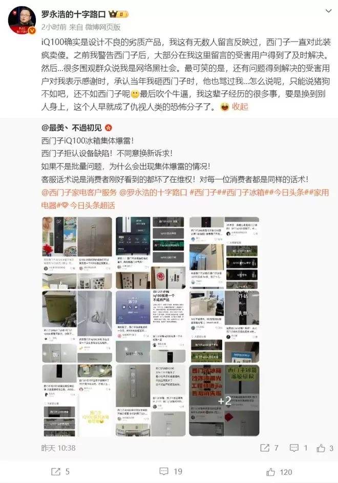 吵翻了!罗永浩再度硬刚西门子,iQ100冰箱大面积翻车