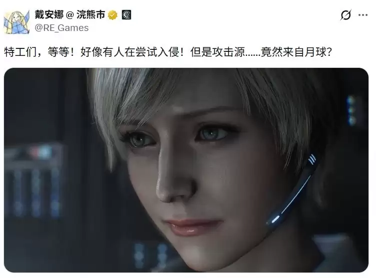 还记得之前卡普空为新作《识质存在》搞的那场别出心裁的推广吗?让游戏里的机器人小女孩戴安娜“黑入”自家官方社媒,发布了一条可爱声明。没想到,这位来自月球的访客,这次玩得更大了——她直接“黑”进了隔壁《生化危机》的官方社交媒体,成功“占领”了阵地。